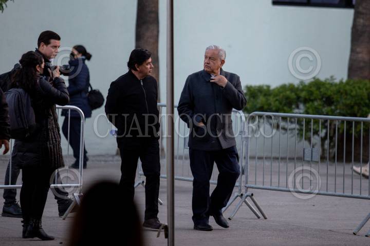 TIJUANA, BAJA CALIFORNIA, 17FEBRERO2022.- Andrés Manuel López Obrador, Presidente de México, ofreció su acostumbrada mañanera en la Zona Militar 2. Lo acompañaron María del Pilar Ávila Olmeda, gobernadora de Baja California; Rosa Icela Rodríguez, secretaria de Seguridad y Protección Ciudadana; Luis Cresencio Sandoval, secretario de la Defensa; José Rafael Ojeda Durán, secretario de la Marina; Luis Rodriguez Bucio, comandante de la Guardia Nacional, y Ricardo Mejía Berdeja, subsecretario de Seguridad Pública. FOTO: OMAR MARÍNEZ/CUARTOSCURO.COM