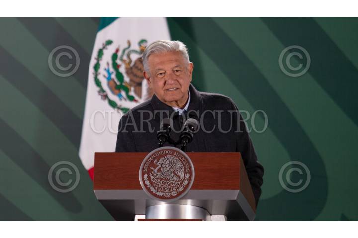 TIJUANA, BAJA CALIFORNIA, 17FEBRERO2022.- Andrés Manuel López Obrador, Presidente de México, ofreció su acostumbrada mañanera en la Zona Militar 2. Lo acompañaron María del Pilar Ávila Olmeda, gobernadora de Baja California; Rosa Icela Rodríguez, secretaria de Seguridad y Protección Ciudadana; Luis Cresencio Sandoval, secretario de la Defensa; José Rafael Ojeda Durán, secretario de la Marina; Luis Rodriguez Bucio, comandante de la Guardia Nacional, y Ricardo Mejía Berdeja, subsecretario de Seguridad Pública. FOTO: OMAR MARÍNEZ/CUARTOSCURO.COM