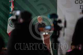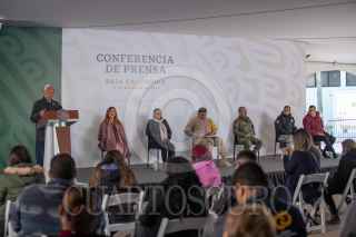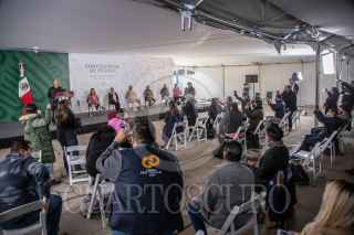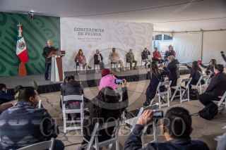 TIJUANA, BAJA CALIFORNIA, 17FEBRERO2022.- Andrés Manuel López Obrador, Presidente de México, ofreció su acostumbrada mañanera en la Zona Militar 2. Lo acompañaron María del Pilar Ávila Olmeda, gobernadora de Baja California; Rosa Icela Rodríguez, secretaria de Seguridad y Protección Ciudadana; Luis Cresencio Sandoval, secretario de la Defensa; José Rafael Ojeda Durán, secretario de la Marina; Luis Rodriguez Bucio, comandante de la Guardia Nacional, y Ricardo Mejía Berdeja, subsecretario de Seguridad Pública. FOTO: OMAR MARÍNEZ/CUARTOSCURO.COM