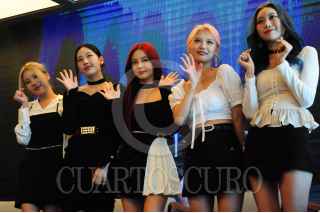 CIUDAD DE MÉXICO, 17FEBRERO2022.- La banda de K-Pop, Momoland, proveniente de Corea del Sur, ofreció una conferencia de prensa para anunciar el contenido de sus próximos shows en la capital del país, las surcoreanas dialogaron con la prensa e interpretaron un pedazo de su nuevo sensillo. FOTO: DANIEL AUGUSTO /CUARTOSCURO.COM