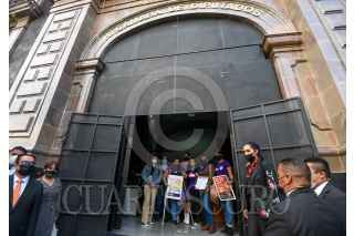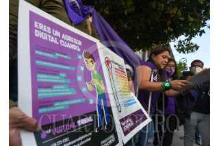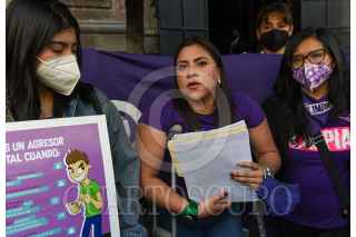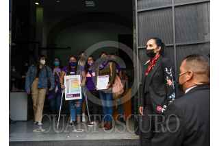TOLUCA, ESTADO DE MÉXICO, 17FEBRERO2022.- Olimpia Coral Melo Cruz acompañada por integrante del Frente Nacional para la Sororidad y Colectiva Defensoras Digitales entregaron en la Cámara de Diputados del Estado de México un posicionamiento con inquietudes y demandas de las víctimas de Violencia Digital en el Edomex y la petición de su causa con #LeyOlimpia para generar acciones que realmente sirvan a la prevención, atención y no revictimización de esta violencia. FOTO: CRISANTA ESPINOSA AGUILAR / CUARTOSCURO.COM