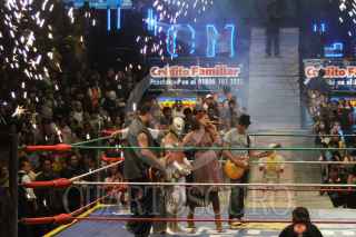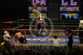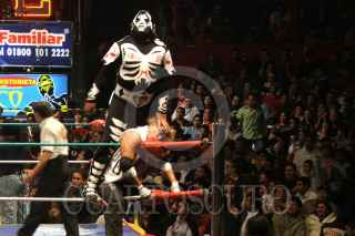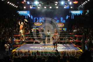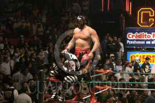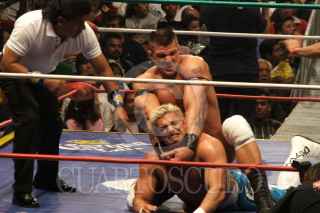 MÉXICO, D.F. 17NOVIEMBRE2006.- El luchador Shocker es sometido por integrante de la secta extranjera en la noche de lucha libre en la arena México. FOTO: SAÚL LÓPEZ/CUARTOSCURO.COM
