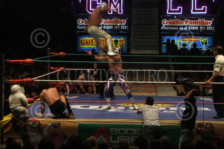 MÉXICO, D.F. 17NOVIEMBRE2006.- El luchador Shocker es sometido por integrante de la secta extranjera en la noche de lucha libre en la arena México. FOTO: SAÚL LÓPEZ/CUARTOSCURO.COM