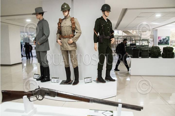 CIUDAD DE MÉXICO, 18FEBRERO2022.- La Secretaría de la Defensa Nacional (SEDENA) inauguró la exposición "Evolución del Ejército y Fuerza Aérea" en el marco del día del Ejército Mexicano, el cual se conmemora cada 19 de febrero. La muestra realizada al interior del edificio principal de la secretaría ubicada en Lomas de Sotelo, reúne una colección de vehículos, uniformes, armas, fotografías y documentos que ejemplifican el desarrollo e historia de las fuerzas armadas en el país. FOTO: MARIO JASSO/CUARTOSCURO.COM