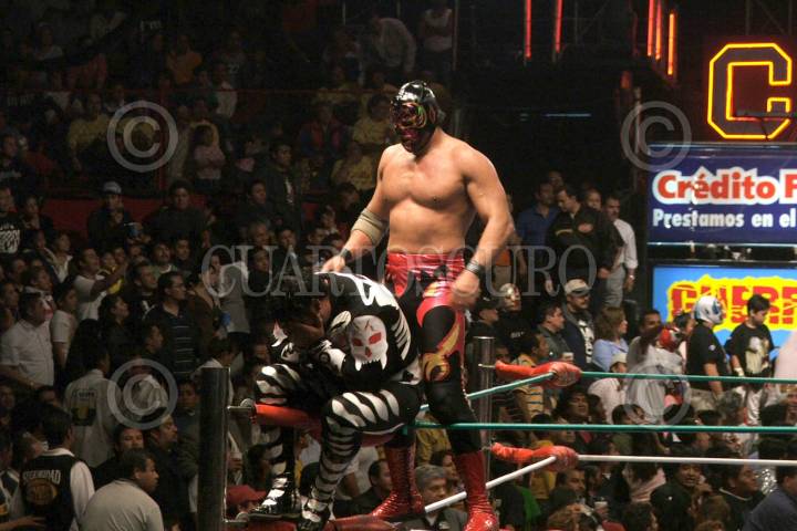 MÉXICO, D.F. 17NOVIEMBRE2006.- El luchador Shocker es sometido por integrante de la secta extranjera en la noche de lucha libre en la arena México. FOTO: SAÚL LÓPEZ/CUARTOSCURO.COM