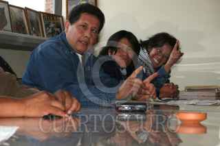 MÉXICO, D.F. 18NOVIEMBRE2006.- Se realizó la constitución de la asamblea popular de los pueblos de México, donde participarán diversos grupos sociales. En la imagen Argelia Ayala, representante del grupo emiliano Zapata, Tonantzin Miranda, del frente popular revolucionario y Jorge Ramos, secretario general del SITUAM. FOTO: PAOLA HIDALGO/CUARTOSCURO.COM