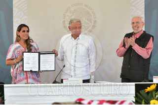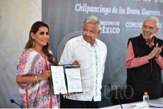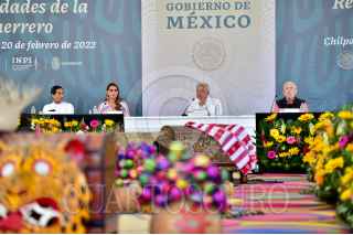 CHILPANCINGO, GUERRERO, 20FEBRERO2022.- Andrés Manuel López Obrador, Presidente de México, encabezó la "Reunión con autoridades de La Montaña de Guerrero", en Palacio de Gobierno. El mandatario fue acompañado por: Evelyn Cecia Salgado Pineda, Gobernadora del Estado de Guerrero; Jorge Arganis Díaz Leal, Secretario de Infraestructura, Comunicaciones y Transportes; Rogelio Ramírez de la O, Secretario de Hacienda y Crédito Público; Juan Pablo de Botton Falcón, Subsecretario de Egresos de la Secretaría de Hacienda y Crédito Público; Jorge Nuño Lara, Subsecretario de Infraestructura de la Secretaría de Infraestructura, Comunicaciones y Transportes; Adelfo Regino Montes, Director General del Instituto Nacional de los Pueblos Indígena. FOTO: PRESIDENCIA/CUARTOSCURO.COM