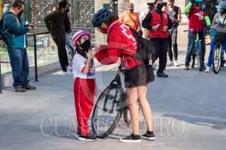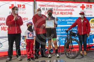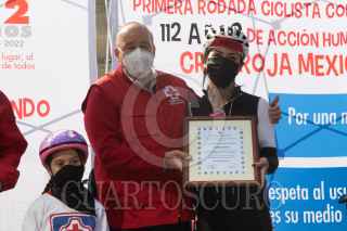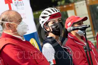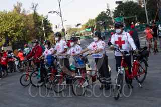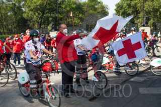 CIUDAD DE MÉXICO, 20FEBRERO2022.- Fernando Suinaga Cárdenas, presidente nacional de la Cruz Roja Mexicana; Alessandra Guiseppina Grossi Herrera, ciclista profesional; y paramédicos de esta benemérita institución, realizaron la primera rodada ciclista conmemorando de los 112 años de Acción Humanitaria de la Cruz Roja Mexicana, el contingente partió de la Estela de Luz al edifico de la Lotería Nacional. FOTO: MOISÉS PABLO/CUARTOSCURO.COM