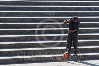 CIUDAD DE MÉXICO, 20FEBRERO2022.- Un trabajador de limpieza barre las escaleras de la Estela de Luz. FOTO: MOISÉS PABLO/CUARTOSCURO.COM