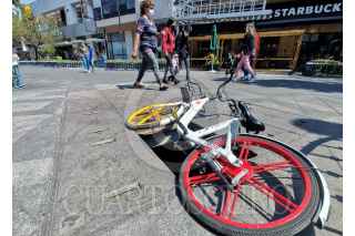 CIUDAD DE MÉXICO, 20FEBRERO2022.- Una bicicleta de renta por aplicación es usada para tapar la falta de un registro en una estación subterránea de la CFE en la calle de Génova. FOTO: MOISÉS PABLO/CUARTOSCURO.COM