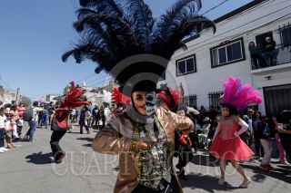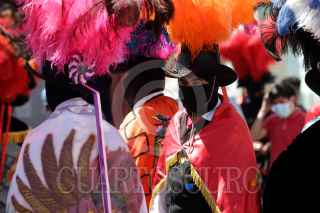 PUEBLA, PUEBLA, 20FEBRERO2022.- Cuadrillas de Huehues bailan por los distintos barrios de Puebla en el inicio del carnaval ahora denominado "Homenaje a los que nos faltan". FOTO: MIREYA NOVO/ CUARTOSCURO.COM