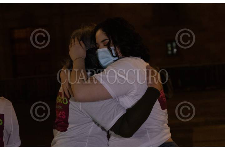 CIUDAD CE MÉXICO, 20FEBRERO2022.- Carmen Sánchez, fundadora de la asociación con su nombre y sobreviviente de intento de feminicidio con ataque de ácido junto con otras mujeres también víctimas proyectaron sus fotos con nombres en la fachada de Palacio Nacional, esto con motivo del octavo año desde el ataque de Carmen. Su agresor se encuentra vinculado por intento de feminicidio pero aún no lo sentencian. FOTO: ANDREA MURCIA /CUARTOSCURO.COM