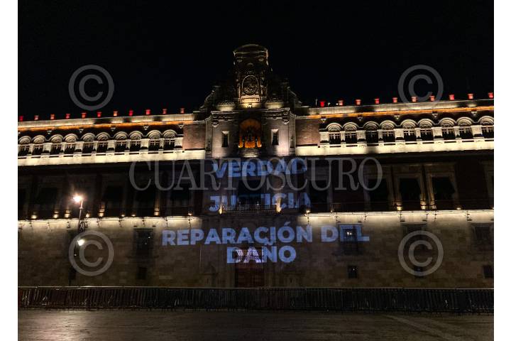 CIUDAD CE MÉXICO, 20FEBRERO2022.- Carmen Sánchez, fundadora de la asociación con su nombre y sobreviviente de intento de feminicidio con ataque de ácido junto con otras mujeres también víctimas proyectaron sus fotos con nombres en la fachada de Palacio Nacional, esto con motivo del octavo año desde el ataque de Carmen. Su agresor se encuentra vinculado por intento de feminicidio pero aún no lo sentencian. FOTO: ANDREA MURCIA /CUARTOSCURO.COM