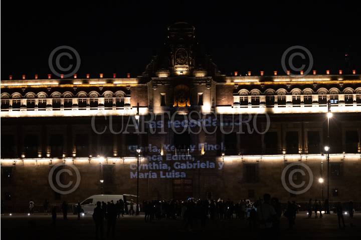 CIUDAD CE MÉXICO, 20FEBRERO2022.- Carmen Sánchez, fundadora de la asociación con su nombre y sobreviviente de intento de feminicidio con ataque de ácido junto con otras mujeres también víctimas proyectaron sus fotos con nombres en la fachada de Palacio Nacional, esto con motivo del octavo año desde el ataque de Carmen. Su agresor se encuentra vinculado por intento de feminicidio pero aún no lo sentencian. FOTO: ANDREA MURCIA /CUARTOSCURO.COM