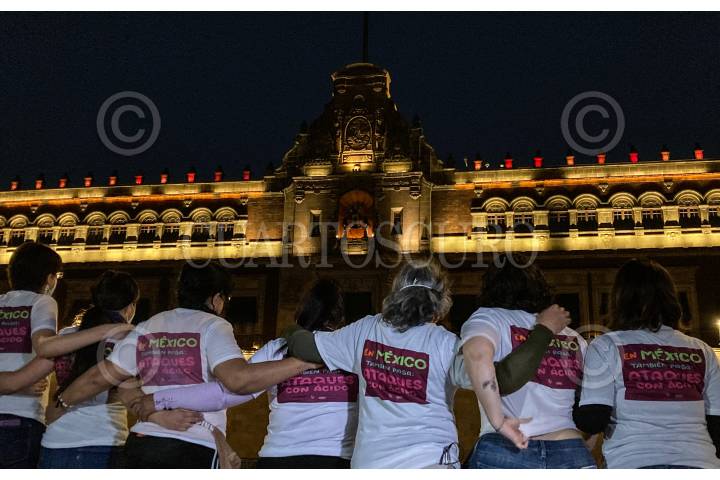 CIUDAD CE MÉXICO, 20FEBRERO2022.- Carmen Sánchez, fundadora de la asociación con su nombre y sobreviviente de intento de feminicidio con ataque de ácido junto con otras mujeres también víctimas proyectaron sus fotos con nombres en la fachada de Palacio Nacional, esto con motivo del octavo año desde el ataque de Carmen. Su agresor se encuentra vinculado por intento de feminicidio pero aún no lo sentencian. FOTO: ANDREA MURCIA /CUARTOSCURO.COM