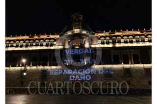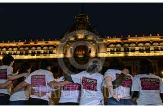 CIUDAD CE MÉXICO, 20FEBRERO2022.- Carmen Sánchez, fundadora de la asociación con su nombre y sobreviviente de intento de feminicidio con ataque de ácido junto con otras mujeres también víctimas proyectaron sus fotos con nombres en la fachada de Palacio Nacional, esto con motivo del octavo año desde el ataque de Carmen. Su agresor se encuentra vinculado por intento de feminicidio pero aún no lo sentencian. FOTO: ANDREA MURCIA /CUARTOSCURO.COM