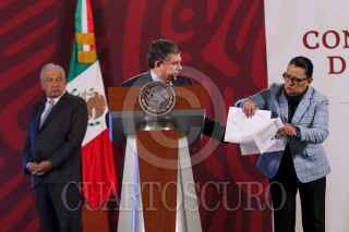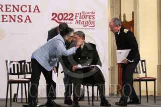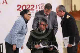 CIUDAD DE MÉXICO, 21FEBRERO2022.- Andrés Manuel López Obrador, Presidente de México, encabezó la conferencia matutina en Palacio Nacional. Lo acompañaron Rosa Icela Rodríguez, secretaria de Seguridad y Protección Ciudadana; Luis Cresencio Sandoval, secretario de la Defensa Nacional; José Rafael Ojeda Durán, secretario de la Marina; Ricardo Sheffield Padilla, director de Profeco; Luis Rodríguez Bucio, comandante de la Guardia Nacional y Ricardo Mejía Berdeja, subsecretario de Seguridad; Adán Augusto López, secretario de Gobernación, y Jesús Ramírez Cuevas, Vocero de la Presidencia. FOTO: MOISÉS PABLO/CUARTOSCURO.COM