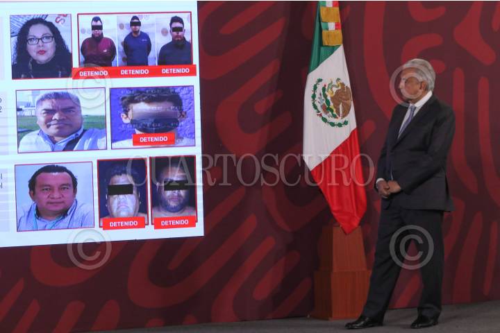 CIUDAD DE MÉXICO, 21FEBRERO2022.- Andrés Manuel López Obrador, Presidente de México, encabezó la conferencia matutina en Palacio Nacional. Lo acompañaron Rosa Icela Rodríguez, secretaria de Seguridad y Protección Ciudadana; Luis Cresencio Sandoval, secretario de la Defensa Nacional; José Rafael Ojeda Durán, secretario de la Marina; Ricardo Sheffield Padilla, director de Profeco; Luis Rodríguez Bucio, comandante de la Guardia Nacional y Ricardo Mejía Berdeja, subsecretario de Seguridad; Adán Augusto López, secretario de Gobernación, y Jesús Ramírez Cuevas, Vocero de la Presidencia. FOTO: MOISÉS PABLO/CUARTOSCURO.COM