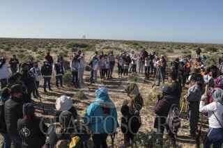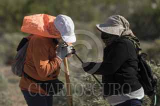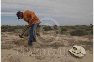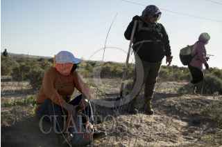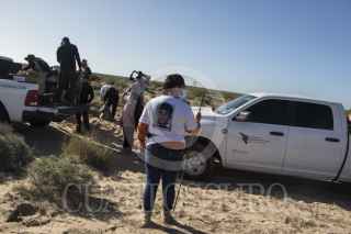 PUERTO PEÑASCO, SONORA, 21FEBRERO2022.- En el tercer día de búsqueda de la Primera Brigada Internacional de Personas Desaparecidas, el trabajo en campo se realizó en la zona desértica de La Ostionera. Al rededor de 50 madres y familiares, realizaron búsqueda de fosas en medio de la arena, arbustos y cactus. A pesar del esfuerzo durante casi 8 horas, solo se lograron localizar un par de restos de huesos humanos y evidencia balística, de una fosa que ya había sido intervenida por la Fiscalía del Estado. FOTO: ADOLFO VLADIMIR /CUARTOSCURO.COM