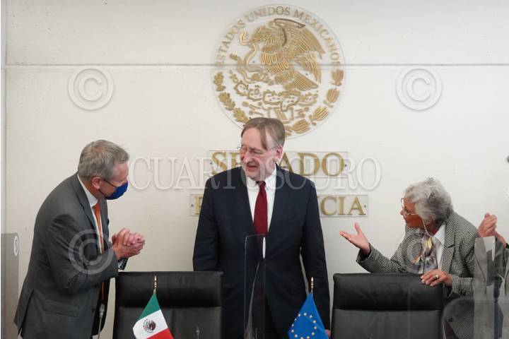 CIUDAD DE MÉXICO, 22FEBRERO2022.- Bernard Lange, presidente de Comercio Europeo, y Olga Sánchez Cordero, presidenta de la mesa directiva del Senado, se reunieron en la Cámara de Senadores. FOTO: GRACIELA LÓPEZ /CUARTOSCURO.COM