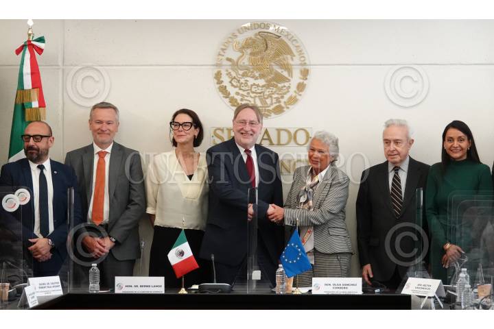 CIUDAD DE MÉXICO, 22FEBRERO2022.- Bernard Lange, presidente de Comercio Europeo, y Olga Sánchez Cordero, presidenta de la mesa directiva del Senado, se reunieron en la Cámara de Senadores. FOTO: GRACIELA LÓPEZ /CUARTOSCURO.COM