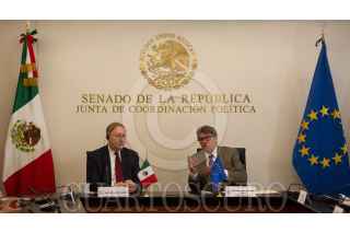 CIUDAD DE MÉXICO, 22FEBRERO2022.- Bernd Lange, presidente de Comercio Europeo, y Ricardo Monreal, presidente de la JUCOPO, se reunieron en el Senado de la República. FOTO: GRACIELA LÓPEZ /CUARTOSCURO.COM