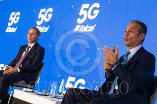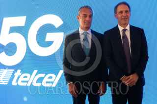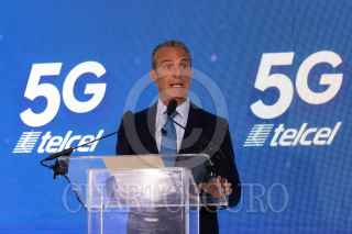 CIUDAD DE MÉXICO, 22FEBRERO2022.- Daniel Hajj Aboumrad, director general de Telcel, y Carlos Slim Domit, presidente del Consejo de Administración de América Móvil, anunciaron que a partir del próximo 28 de febrero estarán disponibles las redes de tecnología de quinta generación, mejor conocida como 5G a nivel nacional, luego de recibir la autorización del pleno del IFT para ofrecer este servicio. Informaron que en esta primera etapa la nueva tecnología estará presente en 18 ciudades del país, en donde se prevé atender a 48 millones de habitantes. FOTO: MOISÉS PABLO/CUARTOSCURO.COM