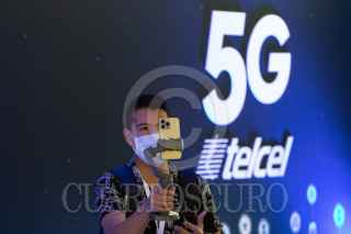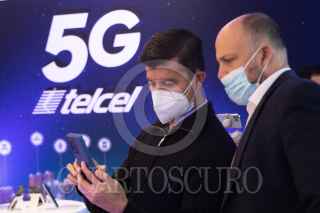 CIUDAD DE MÉXICO, 22FEBRERO2022.- Directivos de Telcel y América Móvil anunciaron que a partir del 28 de febrero ofrecerán la tecnología de 5G en sus servicios de telefonía móvil y fija. Señalaron que esta primera etapa del servicio estará presente en 18 ciudades del país. FOTO: MOISÉS PABLO/CUARTOSCURO.COM