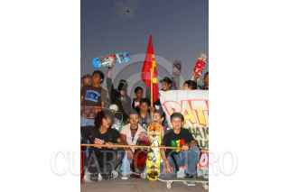 MONCLOVA, COAHUILA. 19 NOVIEMBRE 2006. Jóvenes skate boarders o patinetos acompañan al Subcomandante Marcos, Delegado Zero de La Otra Campaña del EZLN durante mitin en la plaza central de esta ciudad. FOTO: MOYSÉS ZÚÑIGA/CUARTOSCURO.COM