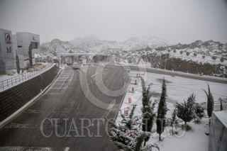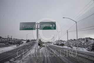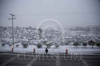 TECATE BAJA CALIFORNIA, 23FEBRERO2022.- La mañana de este martes, el poblado de la Rumorosa amaneció pintada de blanco tras una nevada que se originó en el transcurso de la madrugada. Los caminos principales que conectan a Tijuana con Mexicali permanecieron cerrados a la circulación por las nevadas. FOTO: OMAR MARTÍNEZ /CUARTOSCURO.COM