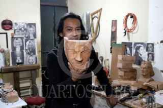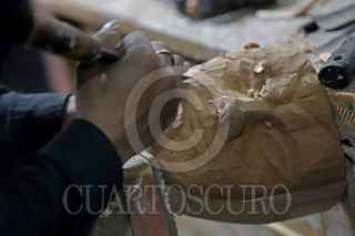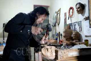 PUEBLA, PUEBLA, 23FEBRERO2022.- El escultor Adrián Becerra elabora máscaras de madera tradicionales del Carnaval de Huehues de la capital poblana. Las máscaras son de madera de pino y pueden tardar hasta un mes en ser terminadas dependiendo de la originalidad del modelo. FOTO: MIREYA NOVO/ CUARTOSCURO.COM