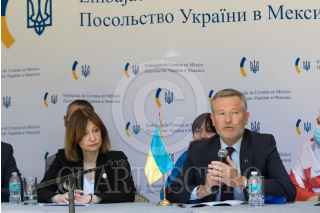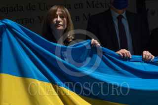 CIUDAD DE MÉXICO, 24FEBRERO2022.- Oksana Dramaretska, embajadora de Ucrania en México, y Gautier Mignot, embajador de la Unión Europea en México, ofrecieron una conferencia de prensa en la Embajada de Ucrania en la alcaldía Miguel Hidalgo. La embajadora llamó a México a romper relaciones con Rusia, esto tras el inicio de las hostilidades militares por parte de los rusos en contra de Ucrania. FOTO: MOISÉS PABLO/CUARTOSCURO.COM