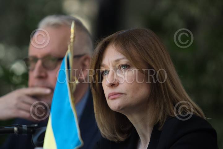 CIUDAD DE MÉXICO, 24FEBRERO2022.- Oksana Dramaretska, embajadora de Ucrania en México, y Gautier Mignot, embajador de la Unión Europea en México, ofrecieron una conferencia de prensa en la Embajada de Ucrania en la alcaldía Miguel Hidalgo. La embajadora llamó a México a romper relaciones con Rusia, esto tras el inicio de las hostilidades militares por parte de los rusos en contra de Ucrania. FOTO: MOISÉS PABLO/CUARTOSCURO.COM