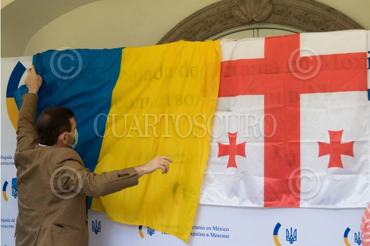 CIUDAD DE MÉXICO, 24FEBRERO2022.- Oksana Dramaretska, embajadora de Ucrania en México, y Gautier Mignot, embajador de la Unión Europea en México, ofrecieron una conferencia de prensa en la Embajada de Ucrania en la alcaldía Miguel Hidalgo. La embajadora llamó a México a romper relaciones con Rusia, esto tras el inicio de las hostilidades militares por parte de los rusos en contra de Ucrania. FOTO: MOISÉS PABLO/CUARTOSCURO.COM