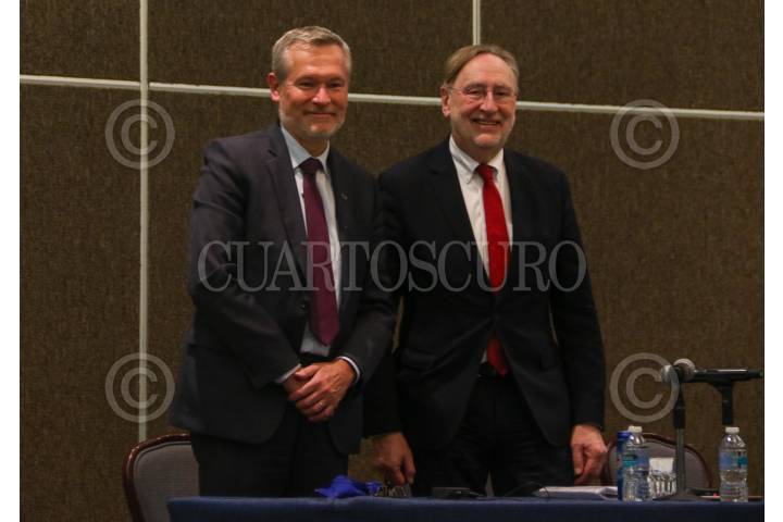 CIUDAD DE MÉXICO. 24FEBRERO2022.- Bernad Lenge, del parlamento Europeo de Comercio junto con Gautier Mignot embajador del Parlamento, en conferencia de prensa hablaron sobre la situación económica en este continente. FOTO: VICTORIA VALTIERRA/CUARTOSCURO.COM