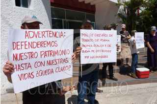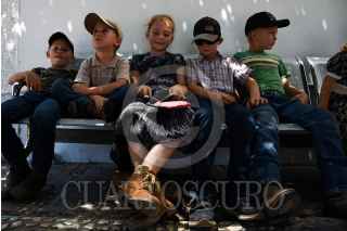 CAMPECHE, CAMPECHE 24 FEBRERO 2022.- Un grupo de menonitas de la comunidad de Guanaceví cerca del poblado de Pich,Campeche, se manifestaron en las afueras de la Fiscalía General del Estado de Campeche (FGECAM), en protesta por el despojo de 600 hectáreas mecanizadas desde el 2019 por Veracruzanos y Guatemaltecos afectando a más de 50 familias. Acusaron a la Fiscalía de no resolver el problema que desde el 2019 denunciaron y que constantemente han acudido pero sin tener solución ni avances, advirtieron que de no tener avances por la autoridad, se defenderán aunque tengan que arriesgar sus vidas para mantener a sus familias. FOTO: MICHAEL BALAM/CUARTOSCURO.COM