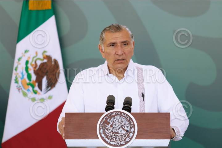 COLIMA, COLIMA, 25FEBRERO2022.- Andrés Manuel López Obrador, Presidente de México, ofreció su conferencia mañanera en el estado. Lo acompañaron Indira Vizcaíno Silva, gobernadora de Colima; Luis Cresencio Sandoval González, secretario de la Defensa Nacional, y Adán Augusto López, secretario de Gobernación. En la cual se firmó el convenio marco para la transformación de los servicios de salud de Colima. FOTO: PRESIDENCIA/CUARTOSCURO.COM