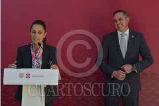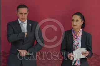 CIUDAD DE MÉXICO, 25FEBRERO2022.- Claudia Sheinbaum, jefa de Gobierno, y Adrián Rubalcava Suárez, alcalde de Cuajimalpa, encabezaron conferencia de prensa luego de la Jornada de Trabajo y Mesa de Trabajo de Agua en la Alcaldía Cuajimalpa. FOTO: MARIO JASSO/CUARTOSCURO.COM
