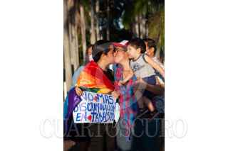 VILLAHERMOSA, TABASCO, 25FEBRERO2022.- Un grupo de personas de la comunidad LGBTTTIQP+ se dieron cita en el Parque Tomás Garrido para llevar a cabo un 'besotón' contra la discriminación por su preferencia sexual. Al respecto, Dayana Arias Torres, delegada de la asociación civil Agenda LGBTI en Tabasco, señaló que la protesta exige un alto a la discriminación, luego de que en ese parque unos policías le pidieran a una pareja lesbica que no se besaran en público. FOTO: CARLOS CANABAL OBRADOR/CUARTOSCUR.COM