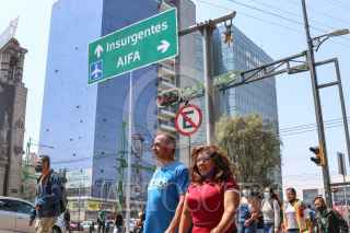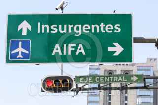 CIUDAD DE MÉXICO, 26FEBRERO2022.- Señalización vial del Aeropuerto Internacional Felipe Ángeles (AIFA) continúa siendo instalado en las principales avenidas de la Ciudad de México a menos de un mes de su inauguración. FOTO: MARIO JASSO/CUARTOSCURO.COM