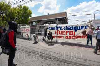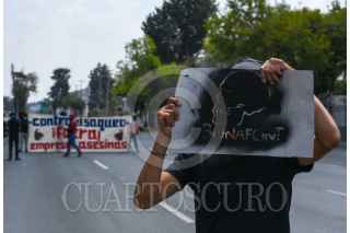 TOLUCA, ESTADO DE MÉXICO, 26FEBRERO2022.- Colectivos ciclistas y Anti sistémicos se manifestaron en la planta de Bonafot en Toluca contra el saqueo de agua de la región cholulteca y la de los volcanes Izta-Popo, en solidaridad con los pueblos en lucha por el derecho del agua en Puebla, los manifestantes también denunciaron la afectación de los humedales de la zona por parte de esta empresa. FOTO: CRISANTA ESPINOSA AGUILAR /CUARTOSCURO.COM