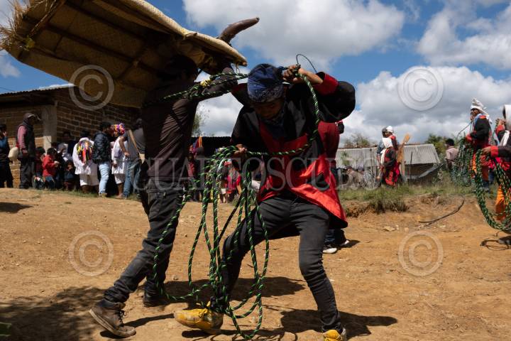 ALDAMA, CHIAPAS, 26FEBRERO2022.- El día de hoy concluye el Carnaval de la comunidad en donde autoridades tradicionales y habitantes de la región celebran sus tradiciones, con bailes, música, rezos y rituales agradecen por la cosecha anterior y piden por la siembra venidera. El carnaval de Aldama se caracteriza por la participación de los más jóvenes como Tanzates, se pintan el cuerpo y la cara de color blanco y recorren y bailan por las calles de la Cabecera Municipal, Las autoridades tradicionales realizan rituales y cantos dentro de la iglesia, donde también las mujeres rezan a cada uno de los santos que albergan en el recinto católico. FOTO: ISABEL MATEOS/CUARTOSCURO.COM