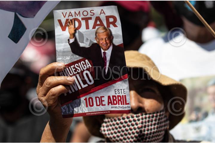 CIUDAD DE MÉXICO, 27FEBRERO2022.- Al rededor de 200 simpatizantes del presidente Andrés Manuel López Obrador congregaron en el Zócalo para expresar su apoyo por su iniciativa a la reforma eléctrica y a la consulta de revocación de mandato. Como parte de la manifestación, también hubo consignas contra supuestos “opositores” del mandatario, entre ellos los consejeros del Instituto Nacional Electoral (INE) y periodistas como Carmen Aristegui. FOTO: ANDREA MURCIA /CUARTOSCURO.COM