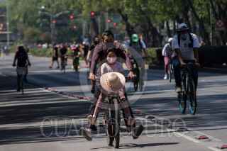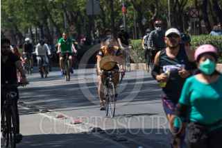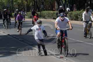 CIUDAD DE MÉXICO, 27FEBRERO2022.- Capitalinos participaron copiosamente en el paseo ciclista en avenida Reforma, a pesar de ser un día bastante caluroso. FOTO: MOISÉS PABLO/CUARTOSCURO.COM