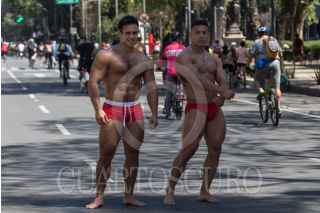 CIUDAD DE MÉXICO, 27FEBRERO2022.- Un par de fisicoculturistas se toman fotos durante el Paseo Ciclista en Reforma. FOTO: MOISÉS PABLO/CUARTOSCURO.COM