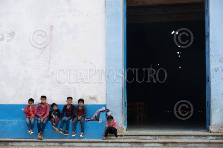 ALDAMA, CHIAPAS, 26FEBRERO2022.- El día de hoy concluye el Carnaval de la comunidad en donde autoridades tradicionales y habitantes de la región celebran sus tradiciones, con bailes, música, rezos y rituales agradecen por la cosecha anterior y piden por la siembra venidera. El carnaval de Aldama se caracteriza por la participación de los más jóvenes como Tanzates, se pintan el cuerpo y la cara de color blanco y recorren y bailan por las calles de la Cabecera Municipal, Las autoridades tradicionales realizan rituales y cantos dentro de la iglesia, donde también las mujeres rezan a cada uno de los santos que albergan en el recinto católico. FOTO: ISABEL MATEOS/CUARTOSCURO.COM
