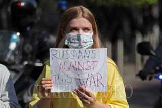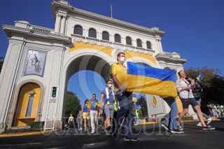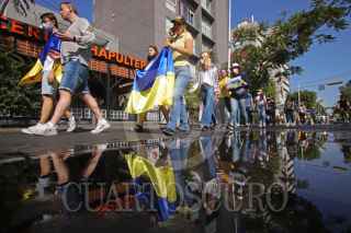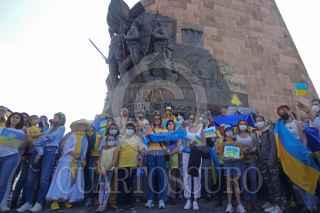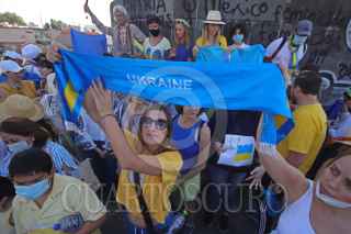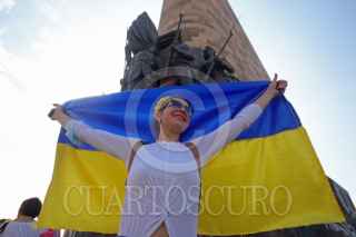 GUADALAJARA, JALISCO, 27FEBRERO2022.- Esta mañana decenas de Ucranianos marcharon en silencio para protestar contra la guerra emprendida por el ejercito Ruso en Ucrania, la misma partió de la Glorieta de la Minerva con rumbo a la Glorieta de los Niños Niños Héroes. FOTO: FERNANDO CARRANZA GARCIA / CUARTOSCURO.COM