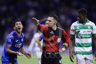 CIUDAD DE MÉXICO, 27FEBRERO2022.- Cruz Azul pierde como local ante el Santos por marcador de 1 a 2 en partido correspondiente a la jornada 7 del torneo Clausura 2022 “Grita México” de la Liga MX en el Estadio Azteca. FOTO: EDGAR NEGRETE/CUARTOSCURO.COM