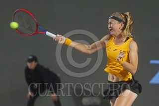 ZAPOPAN, JALISCO, 27FEBRERO2022.- Esta noche en el complejo Akron de Tenis, se llevo a cabo la final de singles del Torneo Abierto Akron Zapopan, entre las tenista americana Sloan Stephens frente a las Checa Marie Bouzkova, donde la americana se impuso y se llevaron la justa. FOTO: FERNANDO CARRANZA GARCIA / CUARTOSCURO.COM
