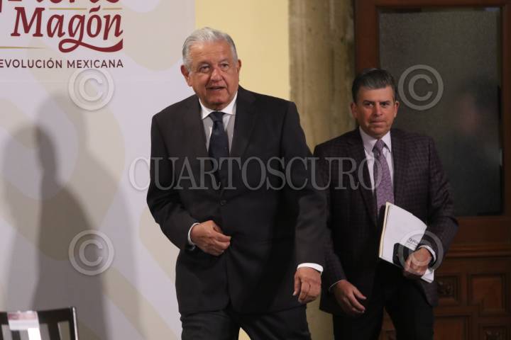 CIUDAD DE MÉXICO, 28FEBRERO2022.- Andrés Manuel López Obrador, Presidente de México, y Ricardo Sheffield Padilla, director de Profeco, durante la conferencia mañanera en Palacio Nacional. FOTO: MOISÉS PABLO/CUARTOSCURO.COM
